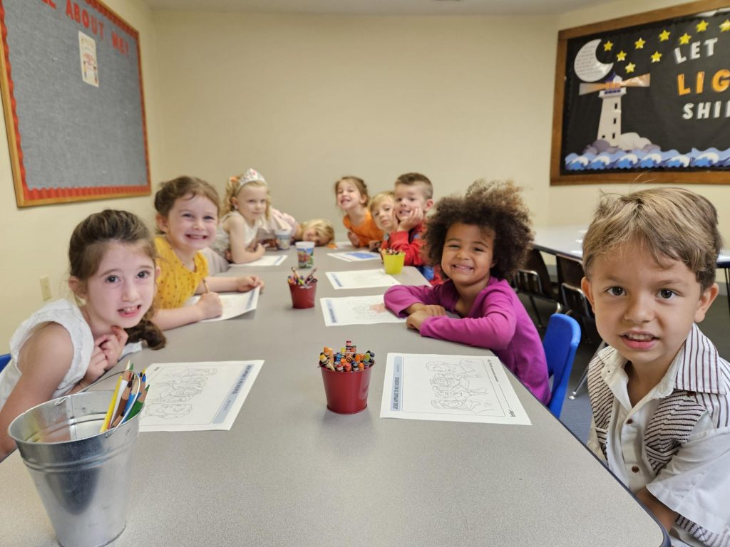 Preschool Worship is designed to meet the needs of young kids (ages 2.5-4.5) in a safe and loving environment where they can grow to trust the church as a fun and comfortable environment. Children attend during the entire 9:15 worship service.