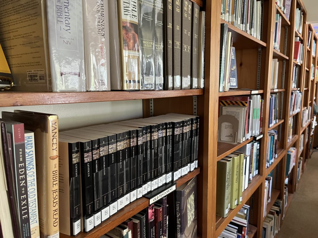 Located across the hall from the church office, come browse and check out one of the 4,500 books, CDs, and DVDs.